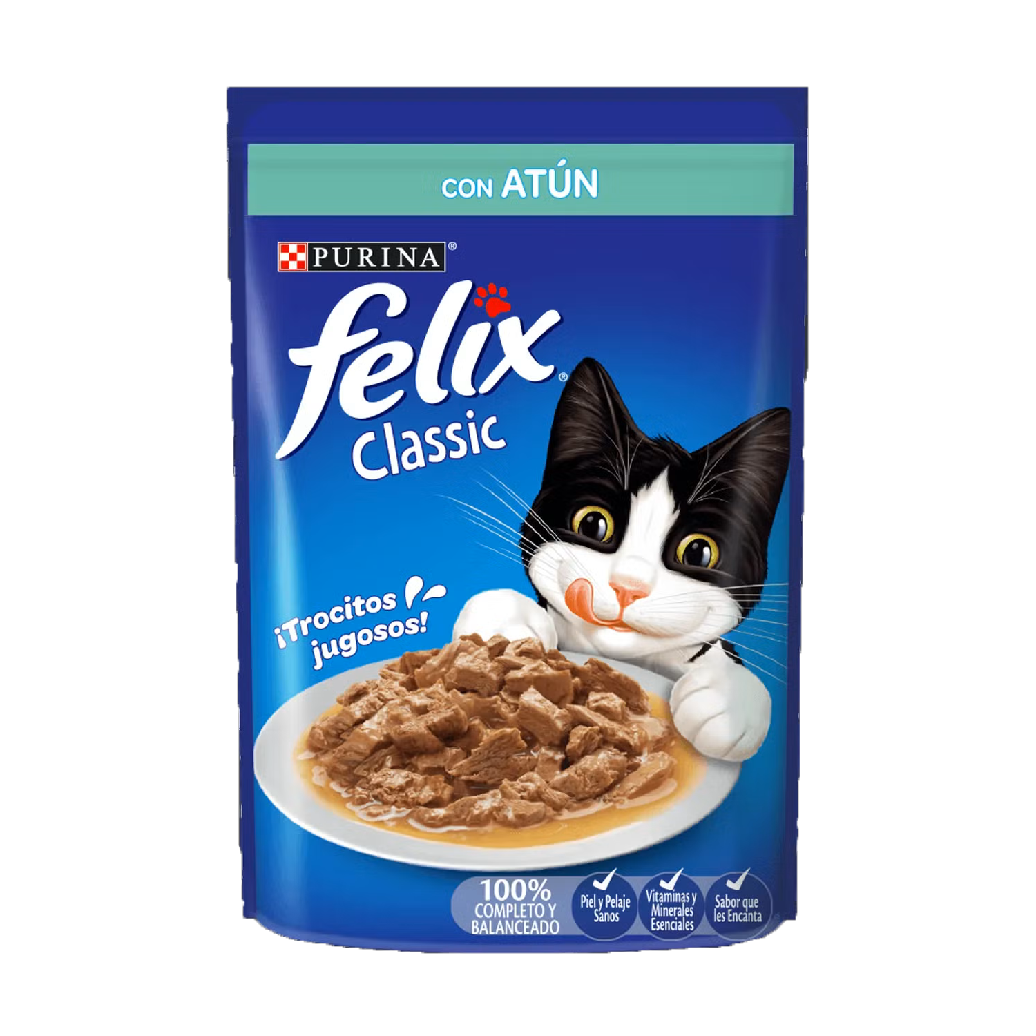 Purina® Felix® Atún en Salsa Alimento húmedo 100% completo y balanceado para gatos en desarrollo en formato sobre con atún.