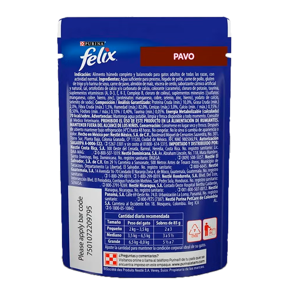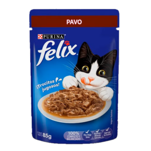 Purina® Felix® Pavo en Salsa Alimento húmedo para Gatos completo y balanceado para gatos en desarrollo, compuesto por trocitos de carne en salsa, para deleitar hasta al paladar gatuno más exigente.