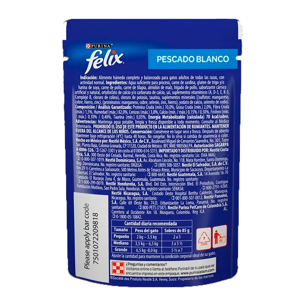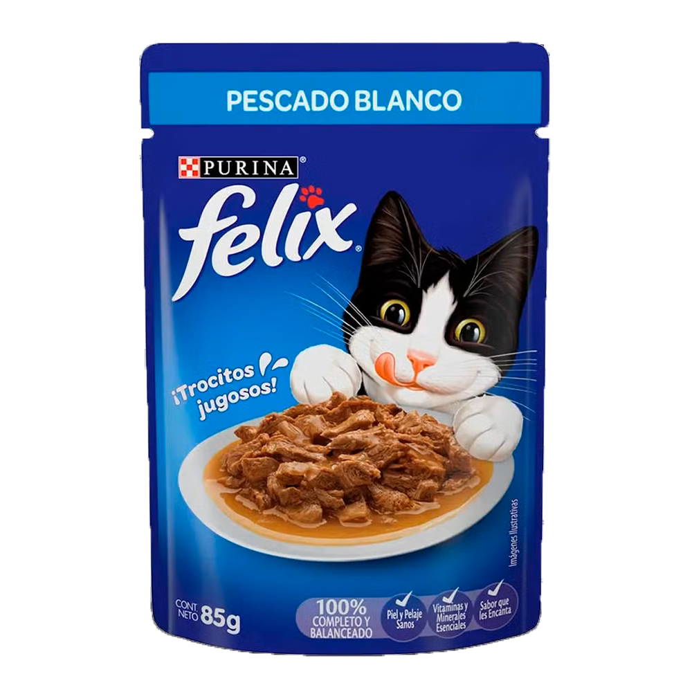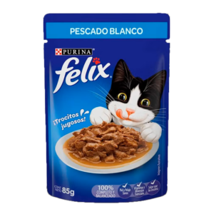 Purina® Felix® Pescado Blanco en Salsa Alimento húmedo para Gatos. Alimento húmedo 100% completo y balanceado para gatitos en desarrollo en formato sobre con pescado blanco.