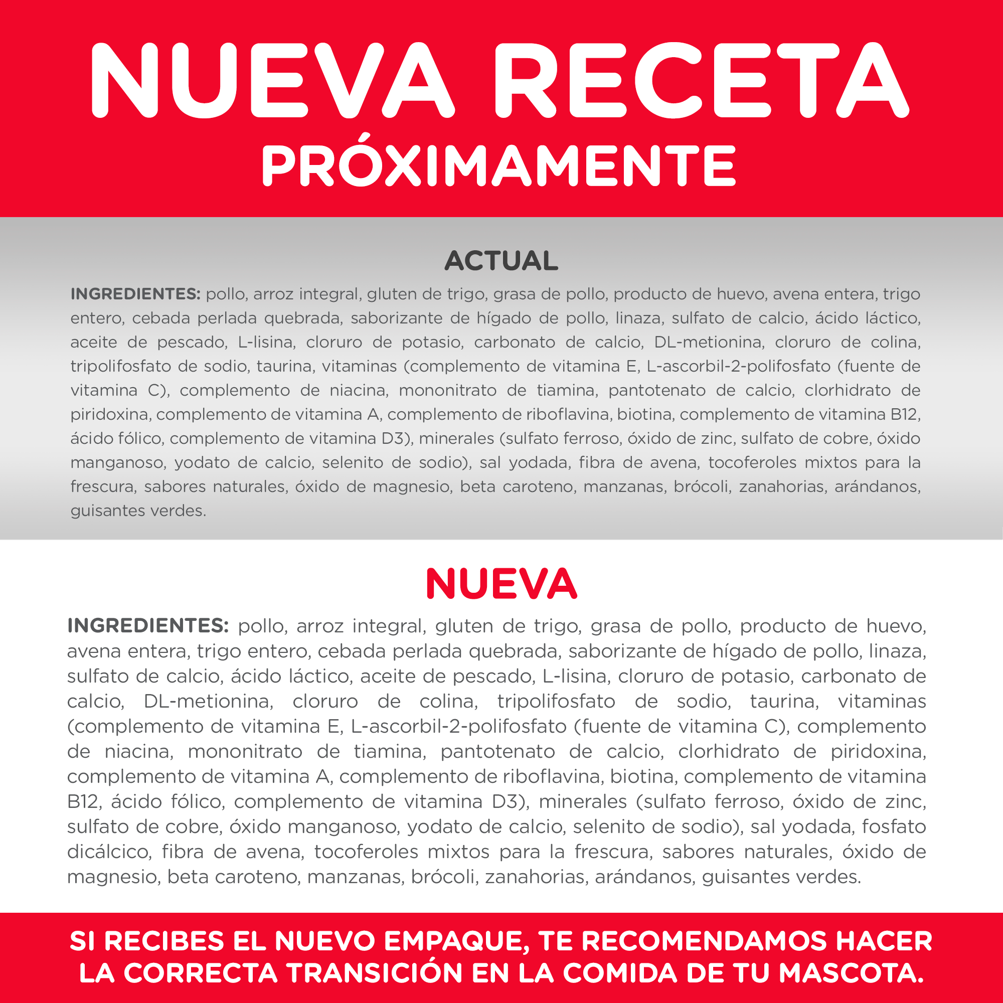 • Proteína de alta calidad para desarrollar músculos magros (Pollo).