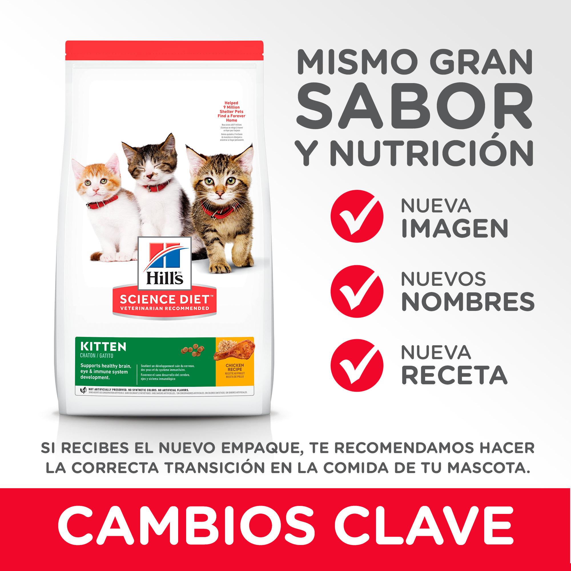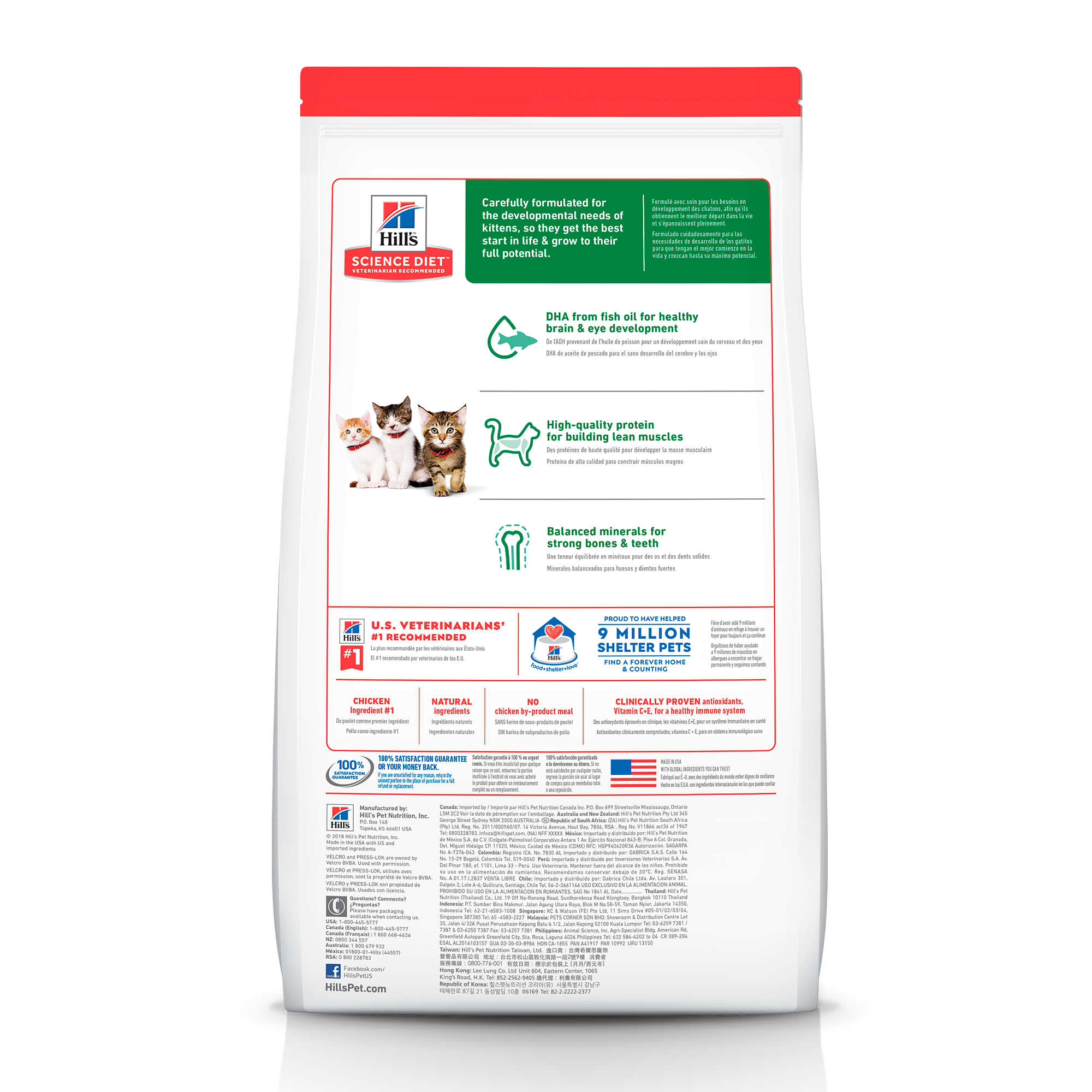 El alimento seco Hill’s™ Science Diet™ Kitten está especialmente formulado para satisfacer las necesidades energéticas de los gatitos y respaldar las necesidades de desarrollo de los gatitos para ayudarlos a comenzar la vida con un crecimiento saludable, un sistema inmunológico fuerte y crezcan a su máximo potencial.