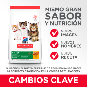 El alimento seco Hill’s™ Science Diet™ Kitten está especialmente formulado para satisfacer las necesidades energéticas de los gatitos y respaldar las necesidades de desarrollo de los gatitos para ayudarlos a comenzar la vida con un crecimiento saludable y un sistema inmunológico fuerte.
